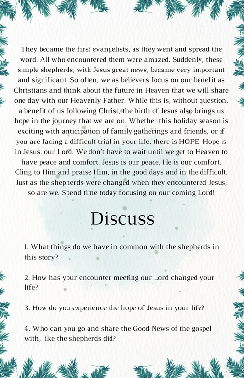 I'm thankful the shepherds were not afraid to go find Jesus and then tell others about him. The good news made its way to me thousands of years later and I pray my desire to share that good news will increase!